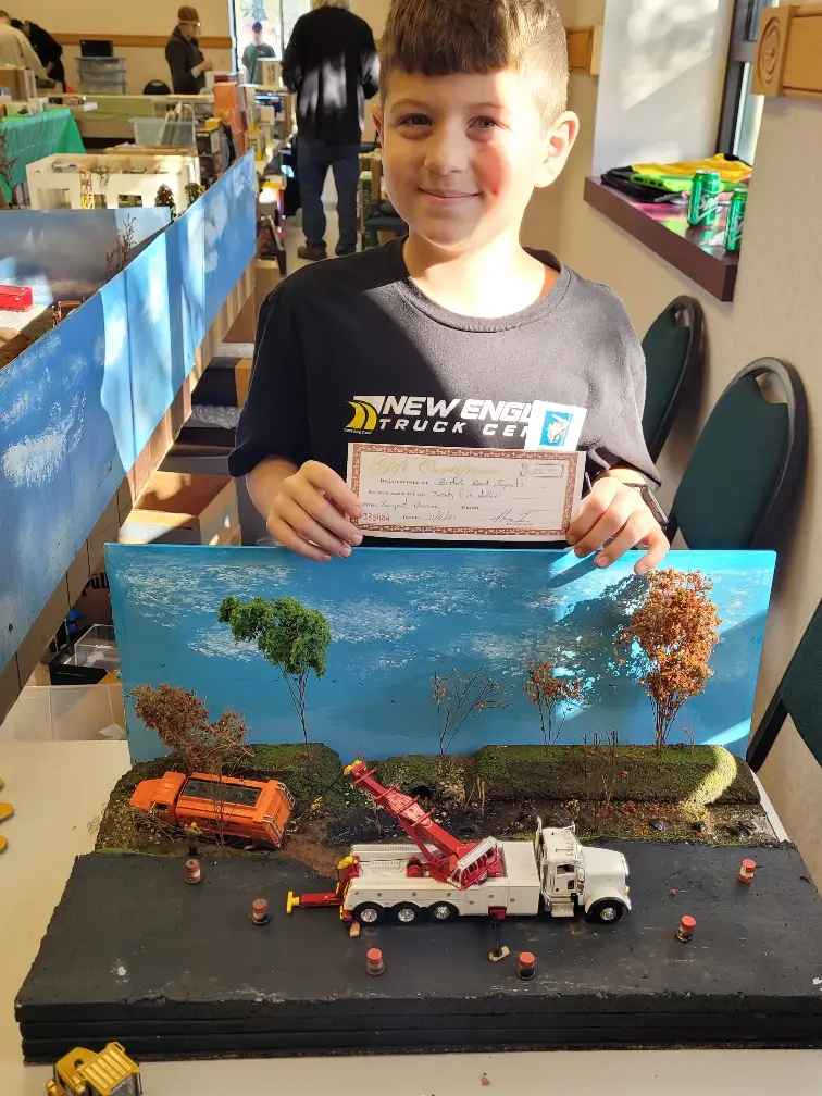 Brandon Skinner and his diorama in a construction model show in Buffalo.