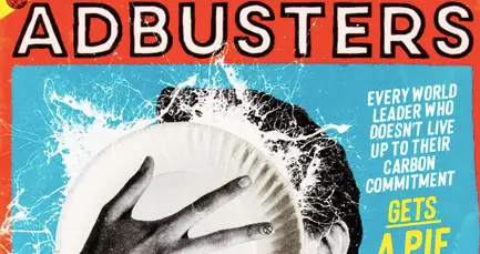 Adbusters – The Pumpkin Pie Rebellion – issue 158 cover – pie in face by hand